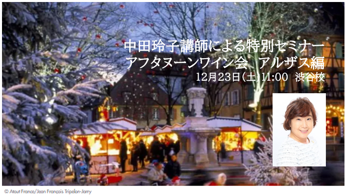 中田講師による特別講座 「楽しみながら産地もまるわかり!アフタヌーンワイン会~アルザス~」