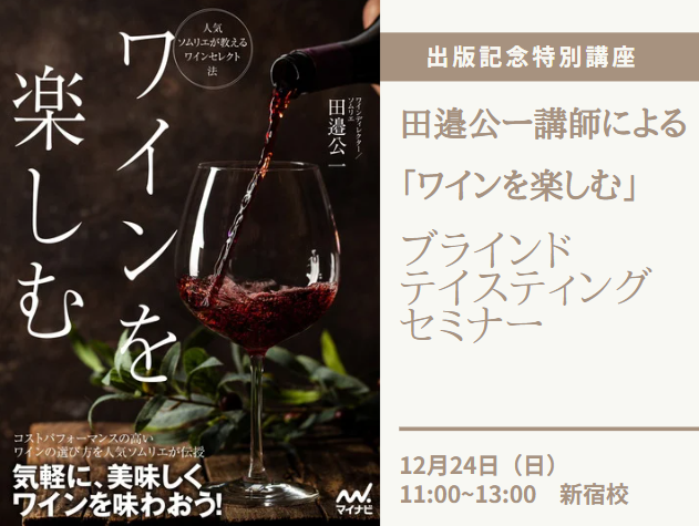 【大好評につき、1月12日(月祝)11時~渋谷校でアンコール開催決定!/前回とワイン5アイテム変更となります】ワインディレクター田邉公一講師による2冊目の著書をこの度上梓いたしました。スクールではこの出版を記念して、著書にまつわるワインテイスティングセミナーを開催いたします。両日満席御礼でご要望にお応えしてアンコール開催が決定いたしました。ご参加には「THE STUDY OF WINE」をご持参ください。(スクールでも販売いたします)