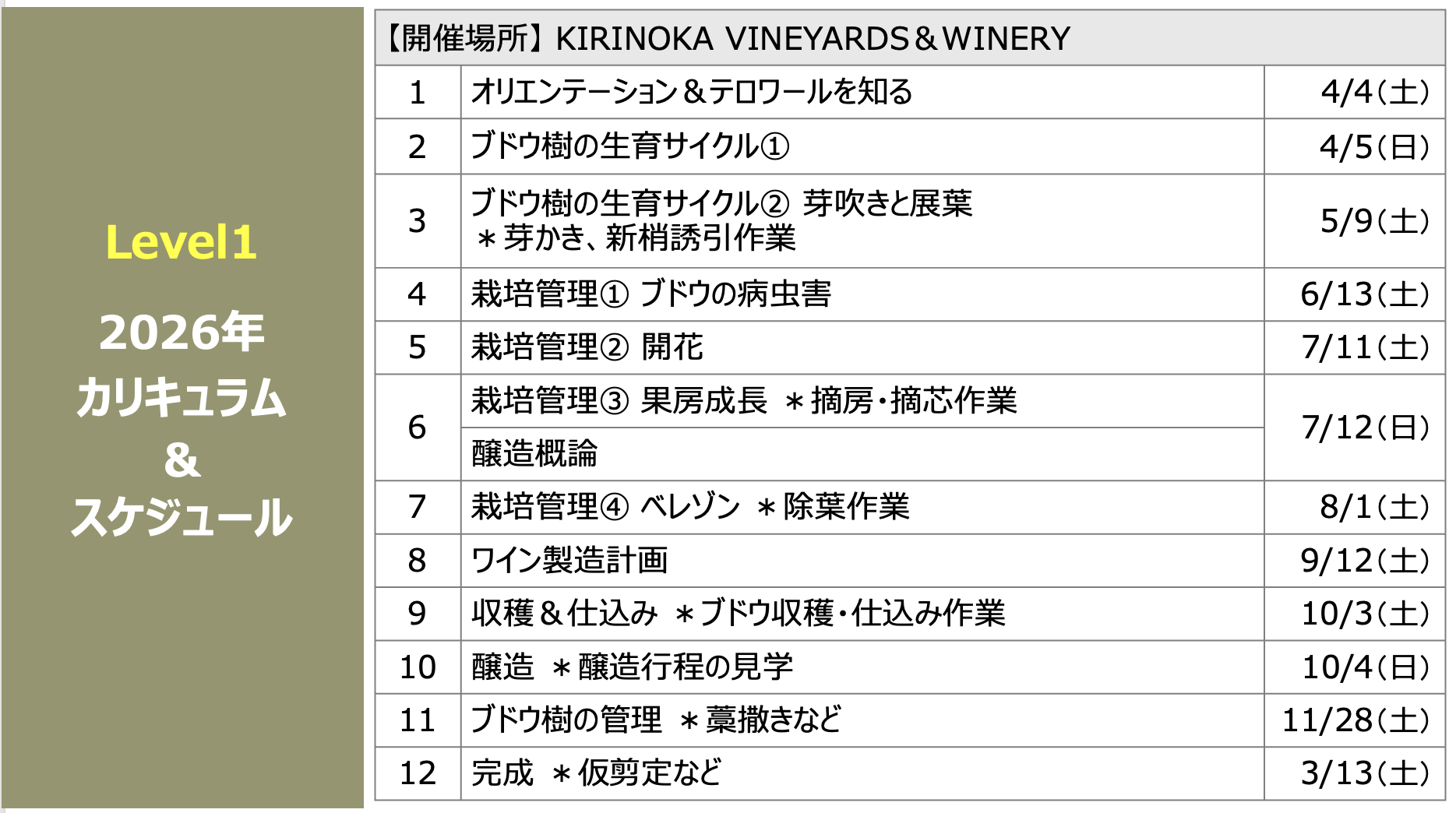LDV ワイン・カレッジ(第2期) KIRINOKA VINEYARDS & WINERY × L'école du Vin 〜 Level 1 〜
