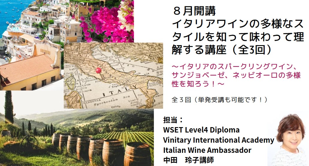 超~わかりやすいタイトルのイタリア講座です。中田講師は今年Vinitary International AcademyのItalian Wine Ambassador資格を取得し、イタリアワインについても歴史から品種、土壌などについて深く学ぶことを継続しています。JSA/WSET,そしてこのイタリアワインアンバサダー、多角的な視点からイタリアワインを学ぶことができます。イタリアという国をブドウから深く知ることができる実り多い講座です。ぜひご参加をお待ちしております。