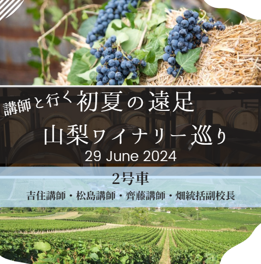 2024年度 初夏の遠足「山梨ワイナリー巡り」2号車(吉住講師・松島講師・齊藤講師・畑統括副校長引率)