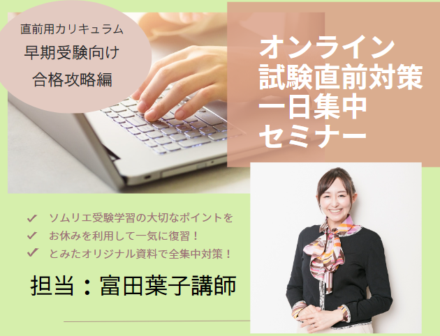 全集中!富田講師によるソムリエ・ワインエキスパート一次直前対策【オンライン】一日集中セミナー 早期合格攻略編